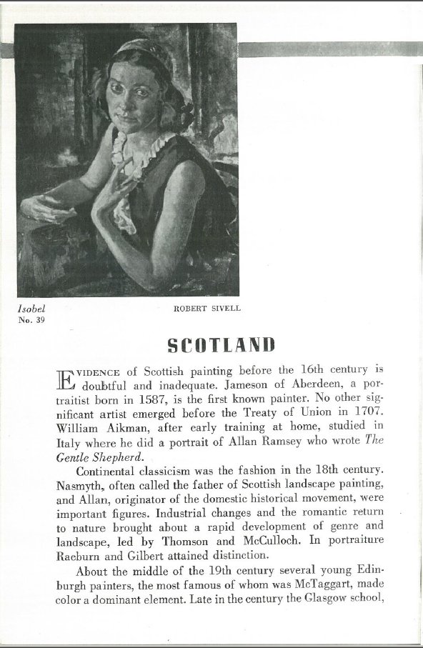 One portrait of his wife, Isobel, was purchased by IBM for exhibit in the USA; it was displayed to represent Scotland at the 1939 Golden GateExpo, in the IBM Gallery of Science & Art. Several
