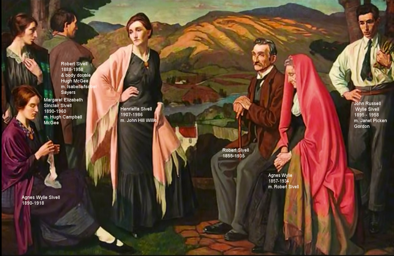 Art Gallery. The City of Aberdeen also holds another large work: a stylized full length group portrait of his parents & siblings in a stylized arrangement. This painting includes a self-portrait where the artist used his brother-in-law as a partial body double, adding only his own hair and a glimps of his face.